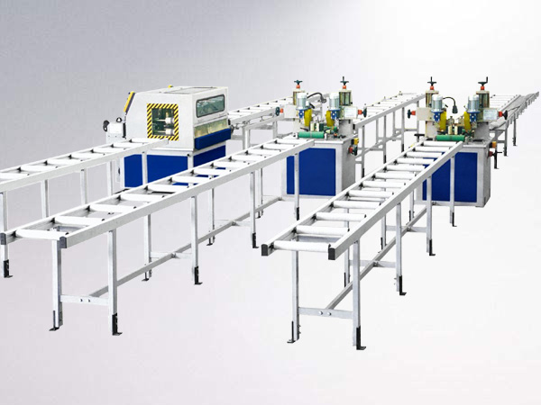 本公司開發研制的“二步法”鋁合金隔熱型材加工生產線,極大地改善了國內原有生產線在工藝上的不足,既提高了生產效率,又實現了節能、低耗,提高了企業效益,是鋁合金隔熱型材加工的理想設備。“二步法”生產線設備包括:開齒穿條機一臺,滾壓機一臺,檢測機一臺以及若干輔架。